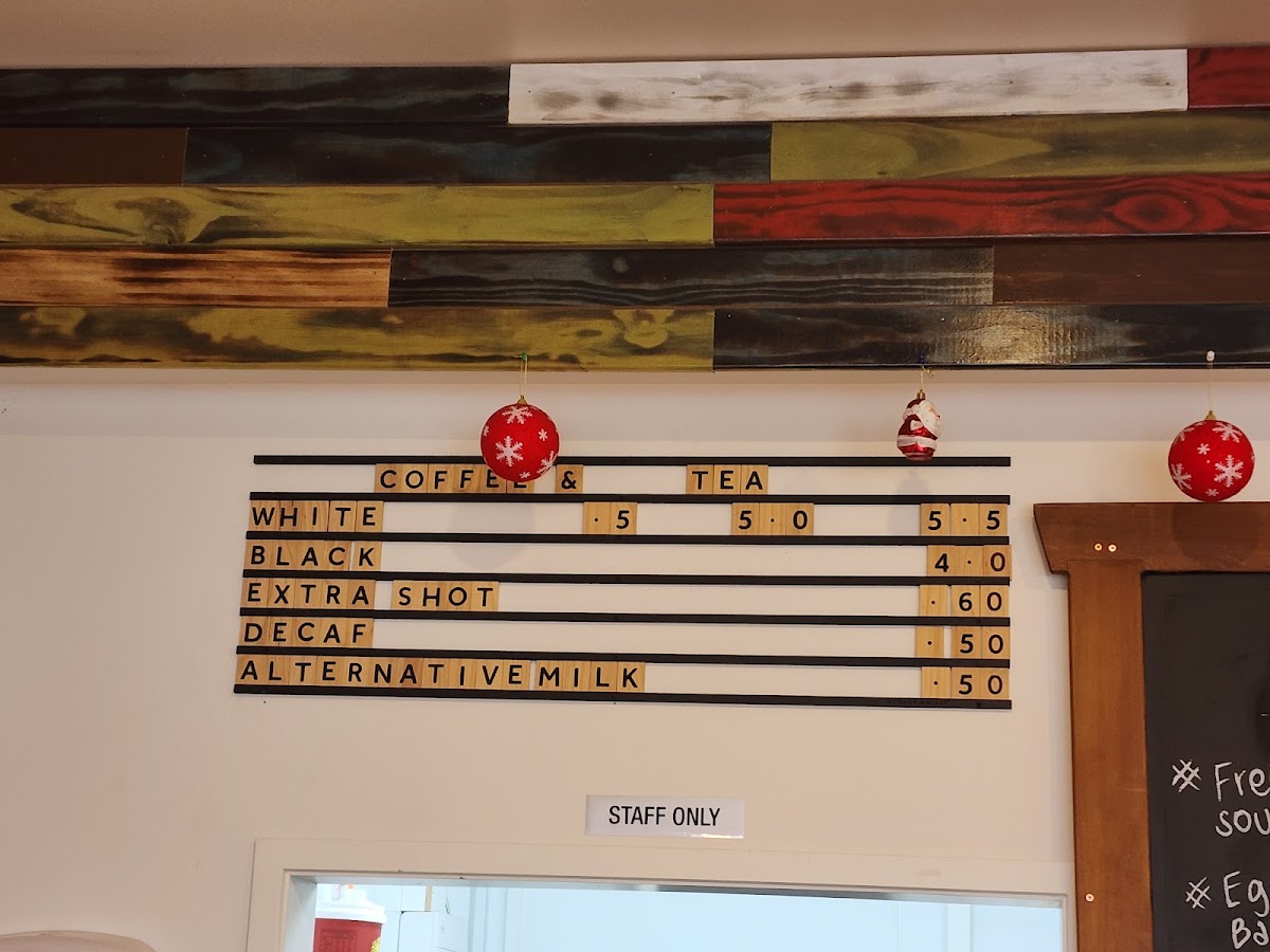 The menu structure allows for both casual dining and quick ordering, suitable for those looking for a meal at different times of the day. It includes options for those seeking gluten-free dishes as well as vegetarian meals, alongside standard cafe fare and beverages like Flat White coffee.